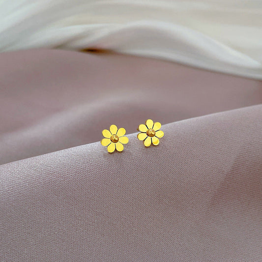 Very Small 18K Gold Daisy-Shaped Earrings with Strass