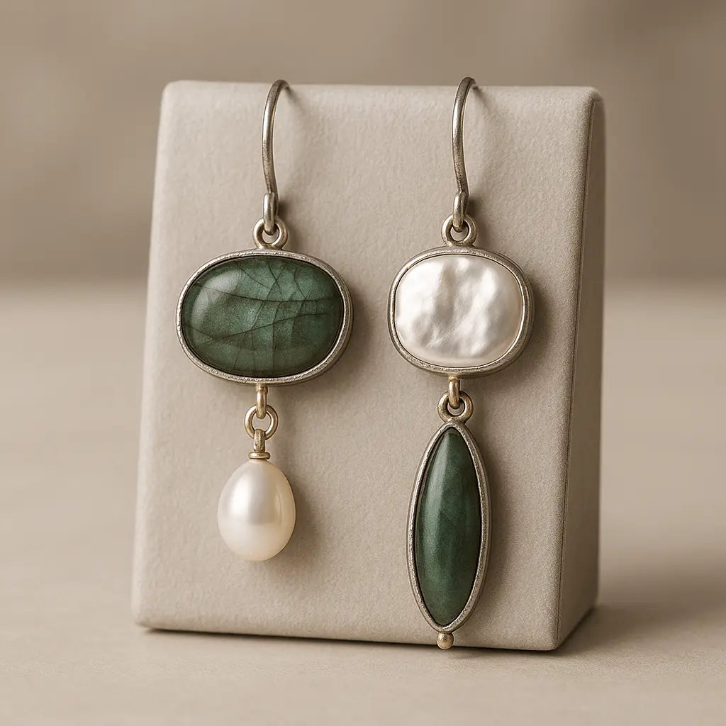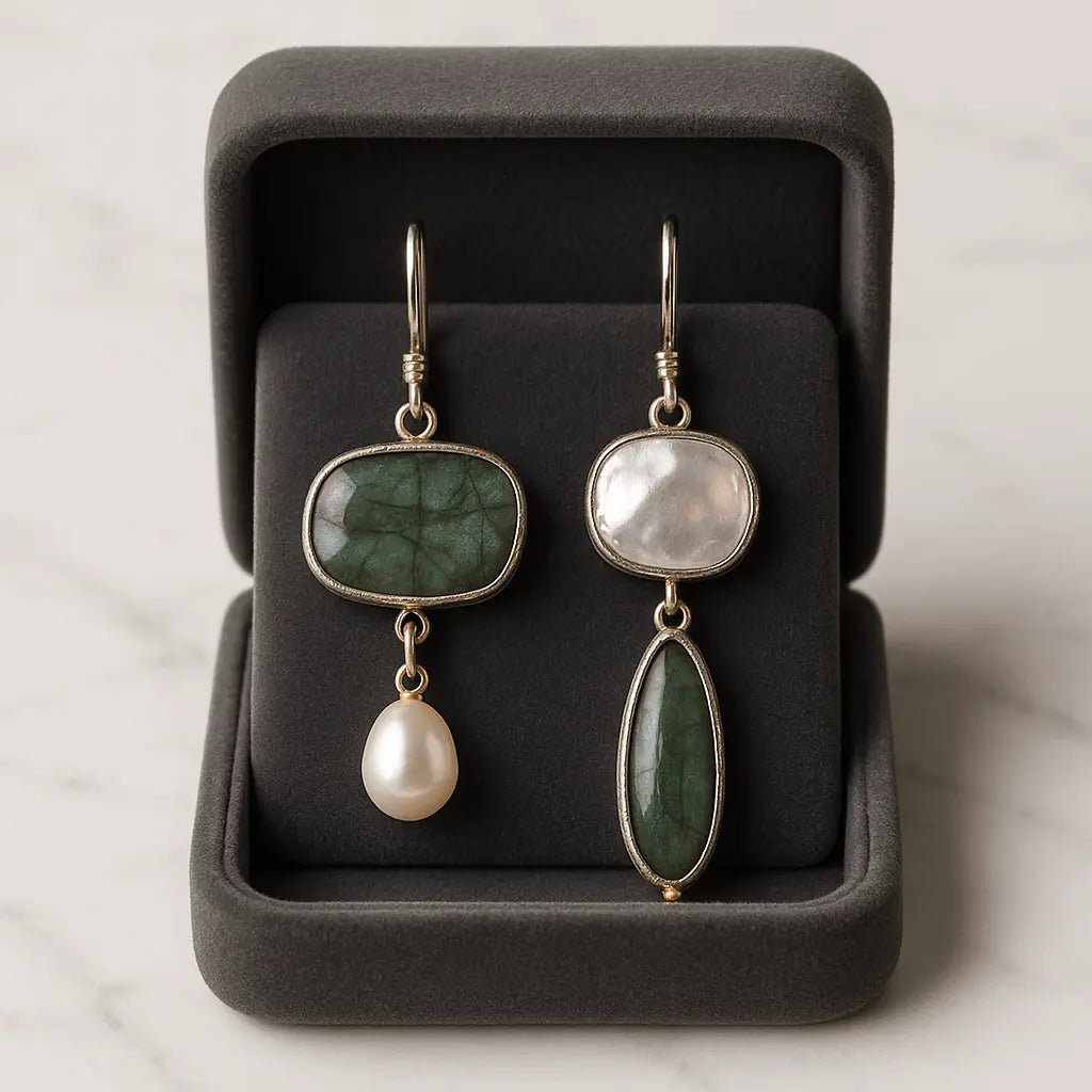 El acabado metálico envejecido potencia la belleza rústica de la piedra, ideal para looks sofisticados y bohemios.